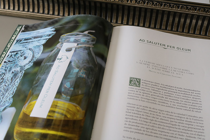 A través de las recetas que se presentan en este libro, esta cocina quiere hacer suya la máxima de Hipócrates: Que la comida sea tu alimento, y el alimento tu medicina. Por este motivo, siguiendo el universal consejo del padre de la medicina en la antigua Grecia, la de Altarium es una gastronomía que sitúa como protagonista principal en la elaboración de sus platos al aceite de oliva virgen extra, un ingrediente excepcional y el alimento más natural, más dietético y el que más ventajas nutricionales aporta. Ad salutem per oleum, a la salud por el aceite de oliva, es la regla de oro de una cocina que se presenta en estas páginas con marchamo de autenticidad, combinando recetas tradicionales junto con otras ideas más imaginativas y renovadas.