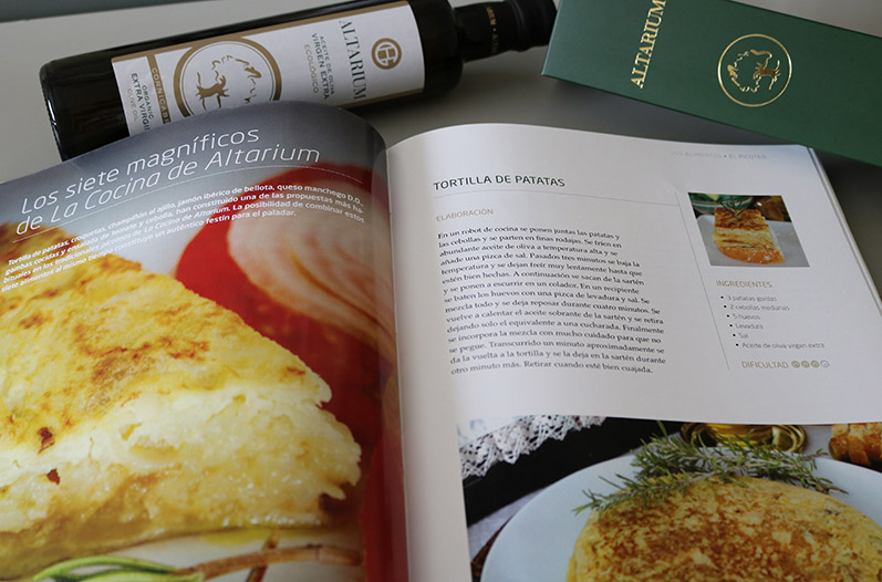 La Cocina de Altarium recoge entre sus 270 páginas las recetas más emblemáticas elaboradas de forma habitual por María Esperanza García de la Torre en los fogones de la casa de Otero durante más de cincuenta años. Se trata de una selección de platos que representan fielmente la personalidad de una cocina tradicional basada en la Dieta Mediterránea, ejemplo de equilibrio dietético y diversidad nutricional, cuyos beneficios para la salud están avalados por numerosas investigaciones científicas y que han hecho que sea declarada por la Unesco Patrimonio Inmaterial de la Humanidad.